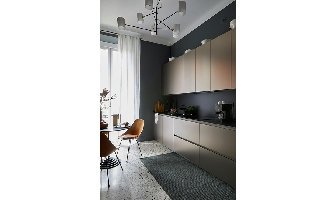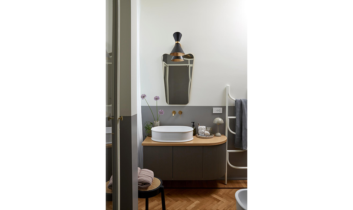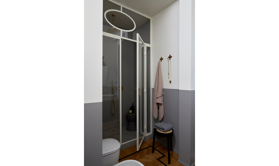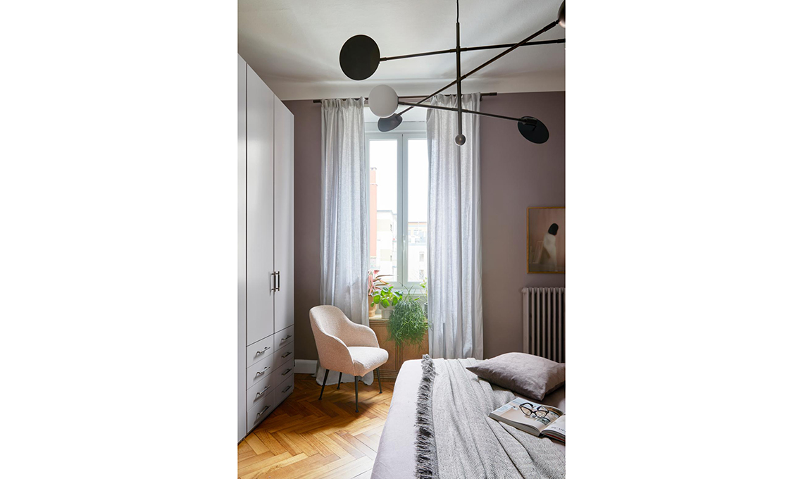 Mantenuti e restaurati porte e pavimenti originali, il bagno è stato leggermente ampliato e ora è molto più spazioso e funzionale. Per il resto Vanessa ha messo in evidenza la struttura e i dettagli d’epoca della casa usando su pareti e mobili dei colori ispirati dal contesto: il prugna dell’ingresso è nato dalla graniglia del pavimento e ha dato il la a una palette di rosa morbidi e polverosi che sfumano nel malva, fino a toccare l’antracite in cucina.