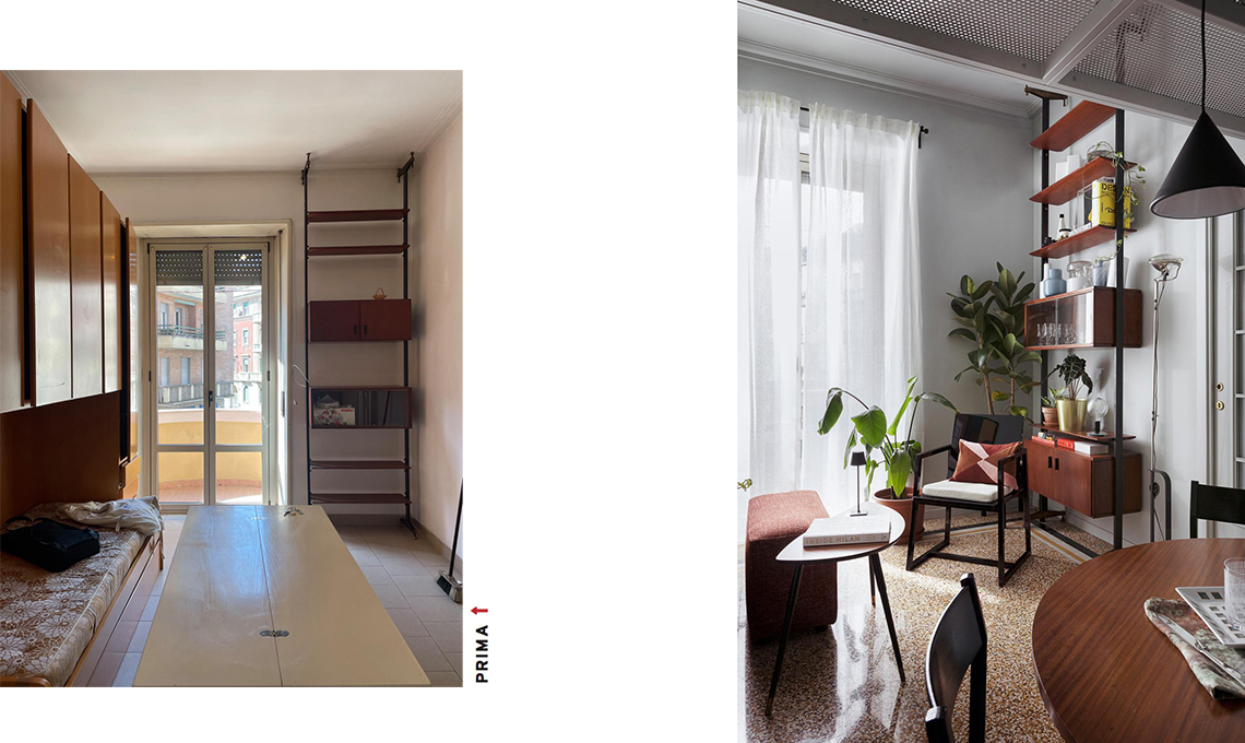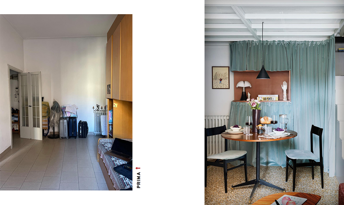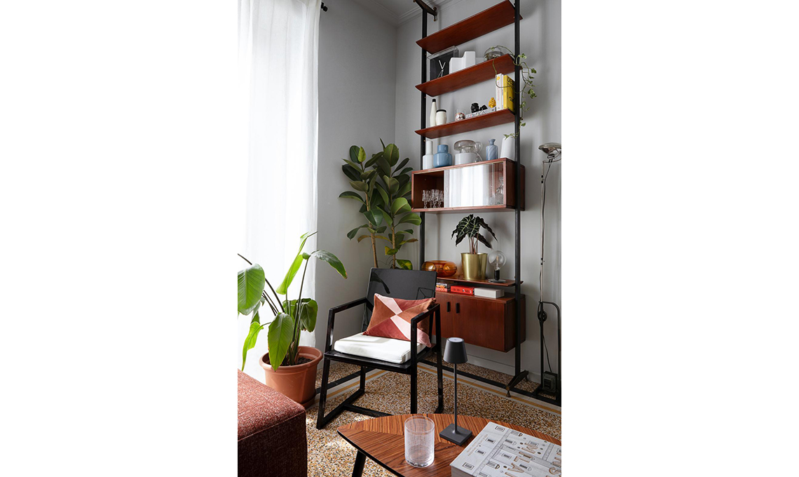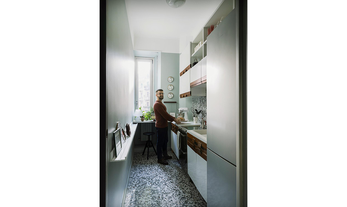 Dopo gli anni da studente fuori sede (è di Pesaro) fatti di case in condivisione, per Omar, ora senior interior designer di Studio Pisk, giunge il momento di spiccare il volo e comprare la prima casa. La sua passione per tutto ciò che è vintage lo spinge tra le braccia di questo piccolo appartamento in un palazzo Anni ’30: «Mi avevano già convinto ingresso e scale» racconta «e poi la luce e il fatto che la cucina fosse separata dal soggiorno hanno fatto il resto, perché amo l’idea di stare sempre nella stessa stanza durante la giornata».