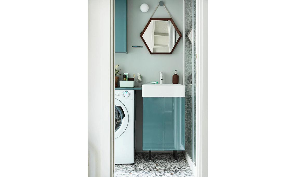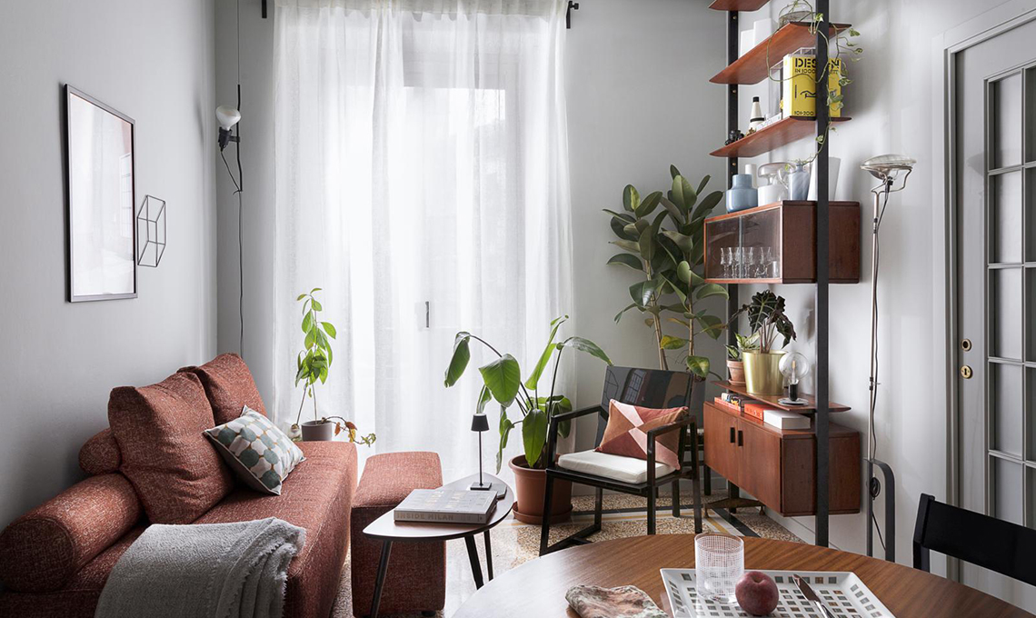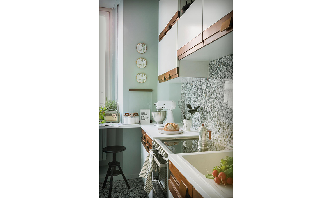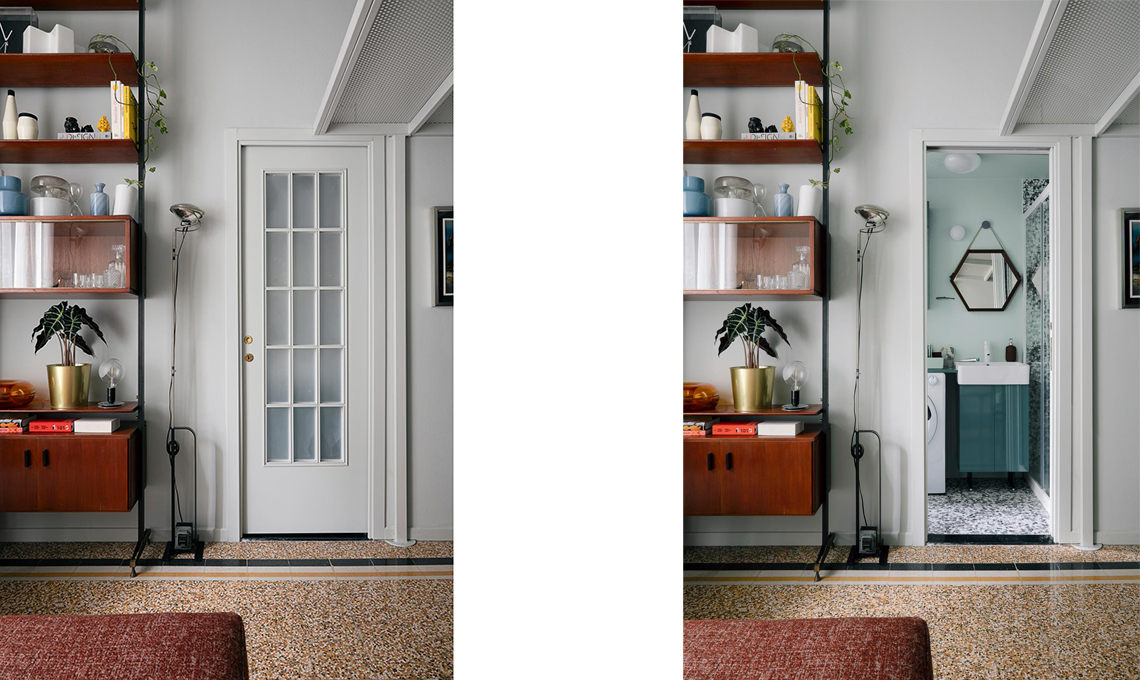 Dopo gli anni da studente fuori sede (è di Pesaro) fatti di case in condivisione, per Omar, ora senior interior designer di Studio Pisk, giunge il momento di spiccare il volo e comprare la prima casa. La sua passione per tutto ciò che è vintage lo spinge tra le braccia di questo piccolo appartamento in un palazzo Anni ’30: «Mi avevano già convinto ingresso e scale» racconta «e poi la luce e il fatto che la cucina fosse separata dal soggiorno hanno fatto il resto, perché amo l’idea di stare sempre nella stessa stanza durante la giornata».