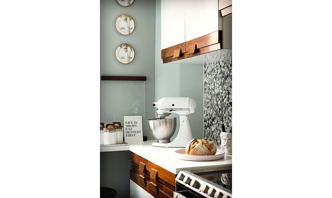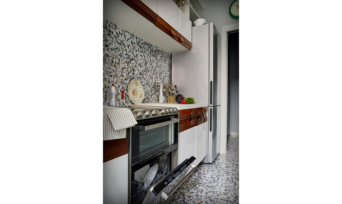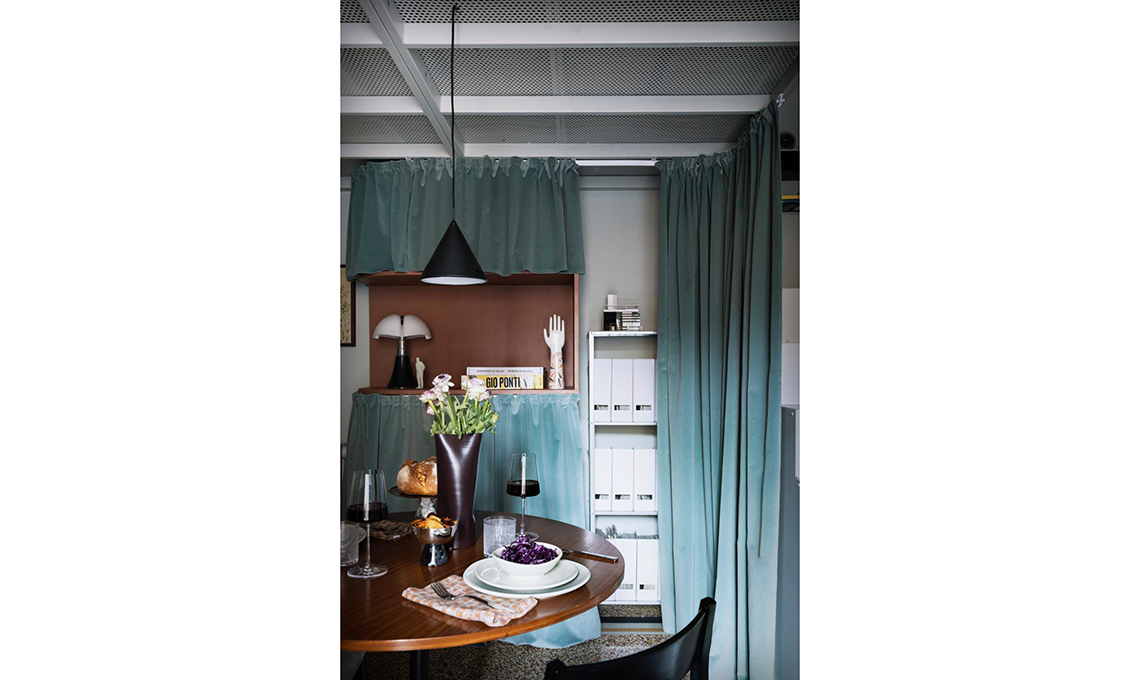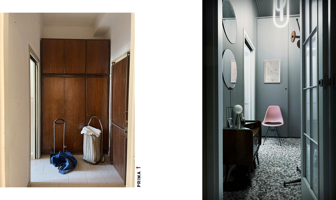 Omar voleva che l’arredo, le finiture e i colori rispecchiassero il contesto d’epoca: la maggior parte di mobili e complementi, per questo, è vintage e quelli nuovi hanno nuance e texture legate al passato. In più, la palette scelta per le pareti, definita dopo il ritrovamento del pavimento originale in graniglia, dona grande eleganza agli ambienti e risulta ‘vibrante’ perché i toni cambiano sfumatura al passaggio della luce.