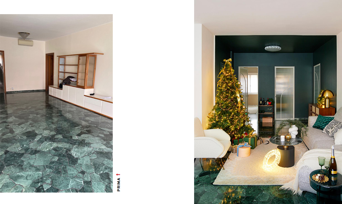 CasaFacile > Speciale Natale > Prima & dopo: i pavimenti in palladiana verde scuro diventano il cuore di un restyling elegante