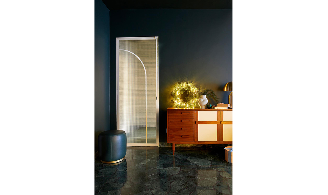 I materiali freddi come il marmo e il metallo delle porte sono scaldati dalle rotondità degli archi, da nuance neutre e texture morbide dei tessili. E per Natale non possono mancare tocchi dorati, vetri e lucine scintillanti super glam.