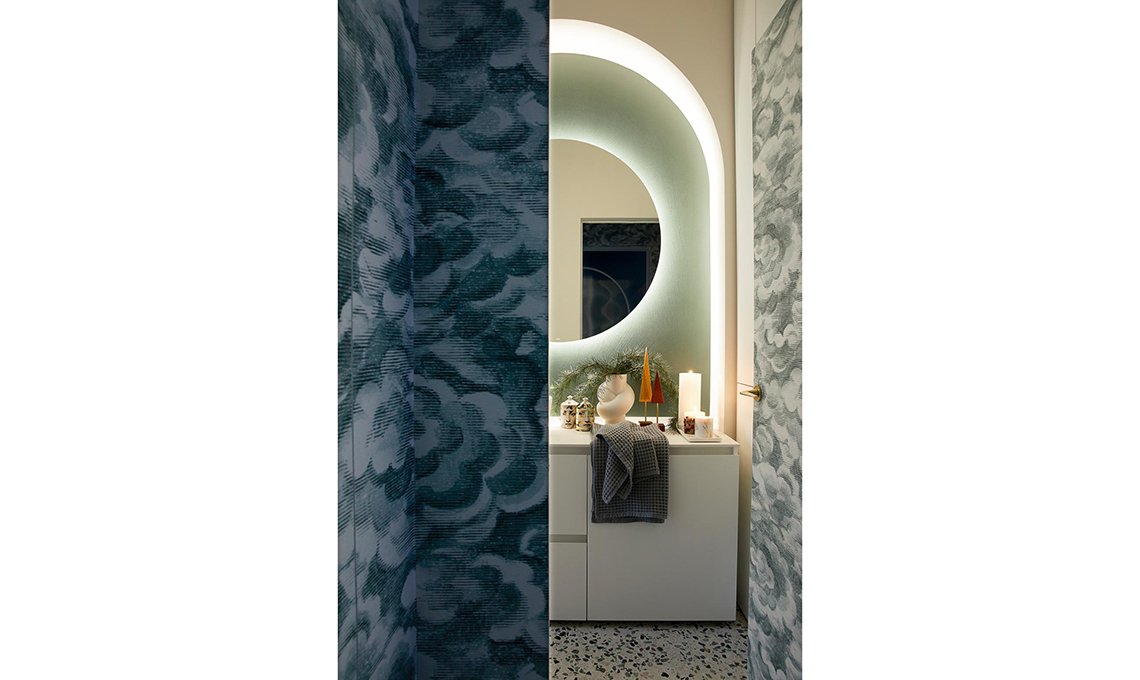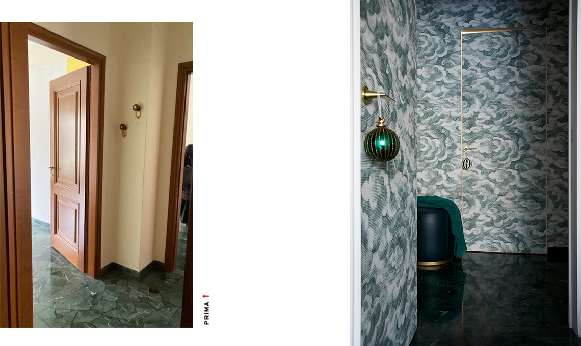 «Volevo che si creasse uno stacco tra le zone giorno e notte, in modo che qui ci fosse più intimità: la tappezzeria con le nuvole proposta da Vanessa per il disimpegno è esattamente quello che cercavo» dice Annalisa.