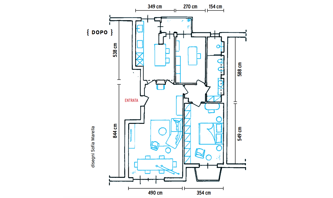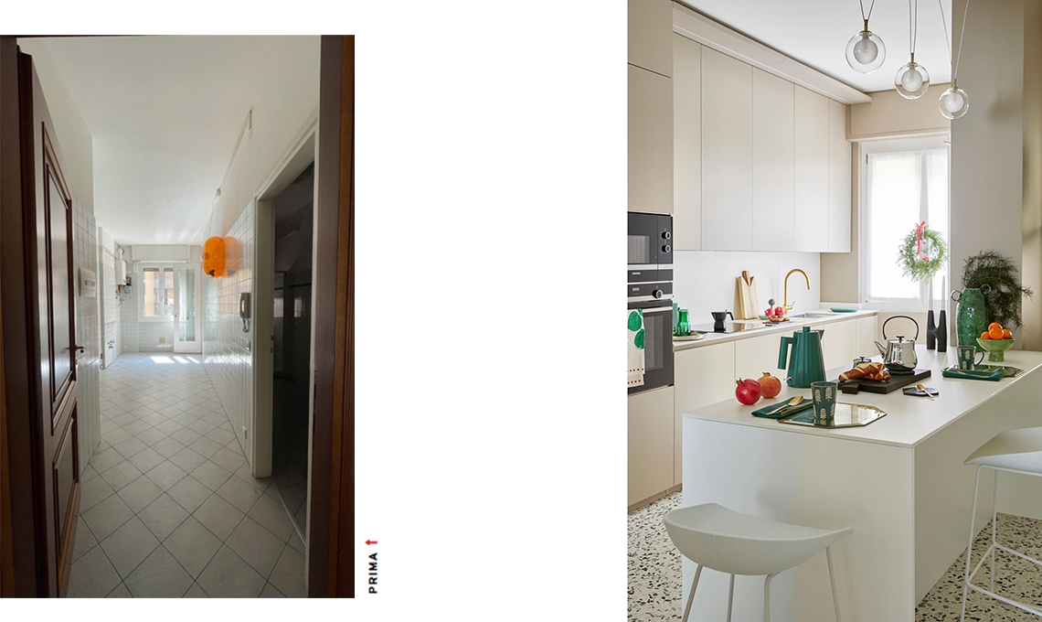 Dopo ben 52 visite...eccola! «Il verde è il mio colore preferito, quindi immaginate il tuffo al cuore quando sono entrata qui e ho visto il pavimento in marmo verde smeraldo e bosco» racconta Annalisa. «Finalmente avevamo trovato la nostra casa! In più c’era tanta luce, un giardino davanti alle finestre e la divisione degli ambienti era ottimale. Certo, la ristrutturazione precedente era degli Anni ’80, quindi impianti e finiture, in particolare dei servizi, erano da rifare e poi volevamo una cucina grande con l’isola... Vanessa e il suo team sono riusciti a rispondere a tutte le nostre richieste in modo unico e il risultato, bello ed elegante, lo sentiamo veramente nostro!».