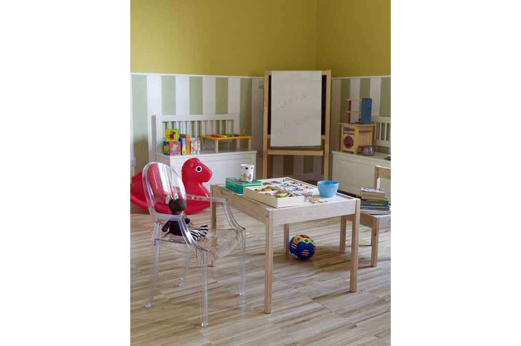 I bimbi Anna e Andrea condividevano già la stanza e per Serena era importante che, ora che il papà è via, stessero vicini durante la notte. «L’idea di Cristina dei lettini che formano un grande divano ad angolo è stata vincente: lo spazio gioco si è ingrandito invece di rimpicciolirsi e c’è posto per una scrivania per tutti e due. Abbiamo coinvolto anche i bambini nella scelta del colore: erano felicissimi!