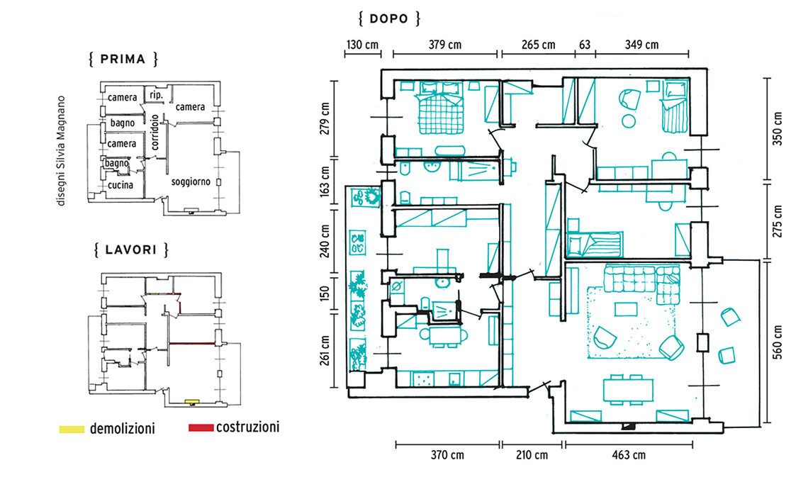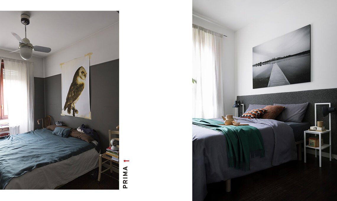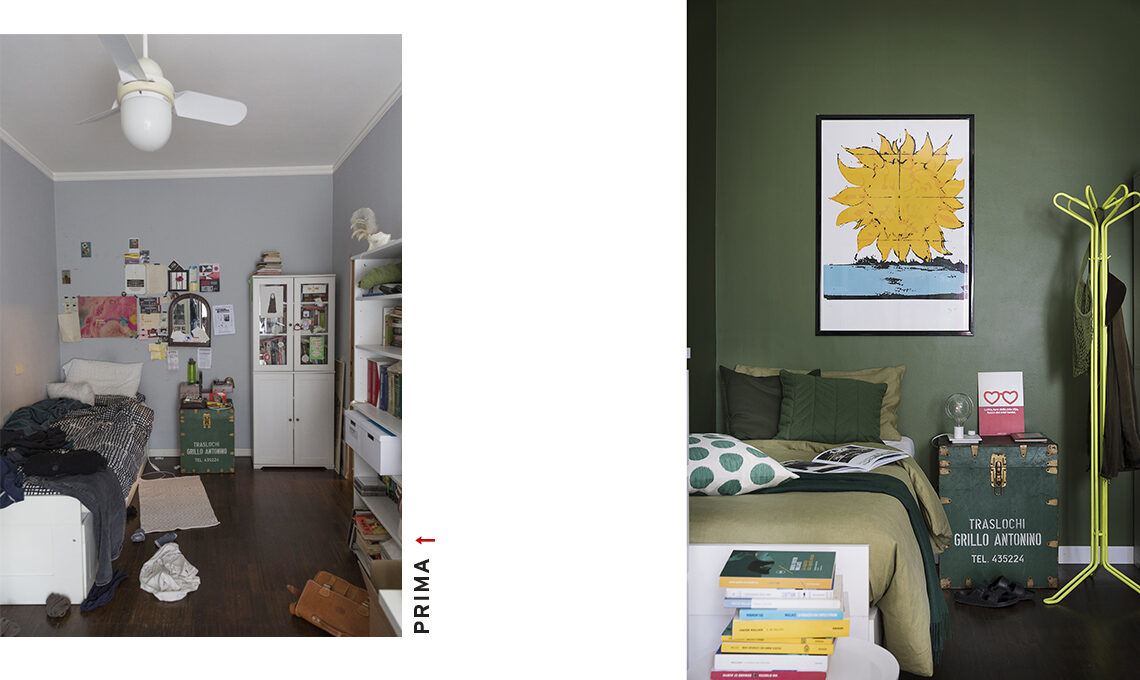 Ridimensionato il soggiorno per creare la camera di Anita, accessibile dal nuovo disimpegno su cui si affaccia anche la stanza di Arturo, il resto dei lavori ha riguardato il restyling: nuovi colori sulle pareti e su alcuni mobili (andate a sbirciare in cucina...), tappezzerie che aprono scenari inaspettati e tanti contenitori in più. Perché nel tempo in ogni casa il problema è come tenere tutto in ordine! Per l’ingresso è stato progettato un mobile su misura con armadio e libreria, in camera di Anita una parete è occupata da una scaffalatura e finalmente Beatrice ha il suo angolo in camera. Dove prima c’erano i colori forti ora c’è il bianco, dove c’era il bianco ora ci sono i colori, tutte vernici ad acqua e che catturano la fomaldeide.