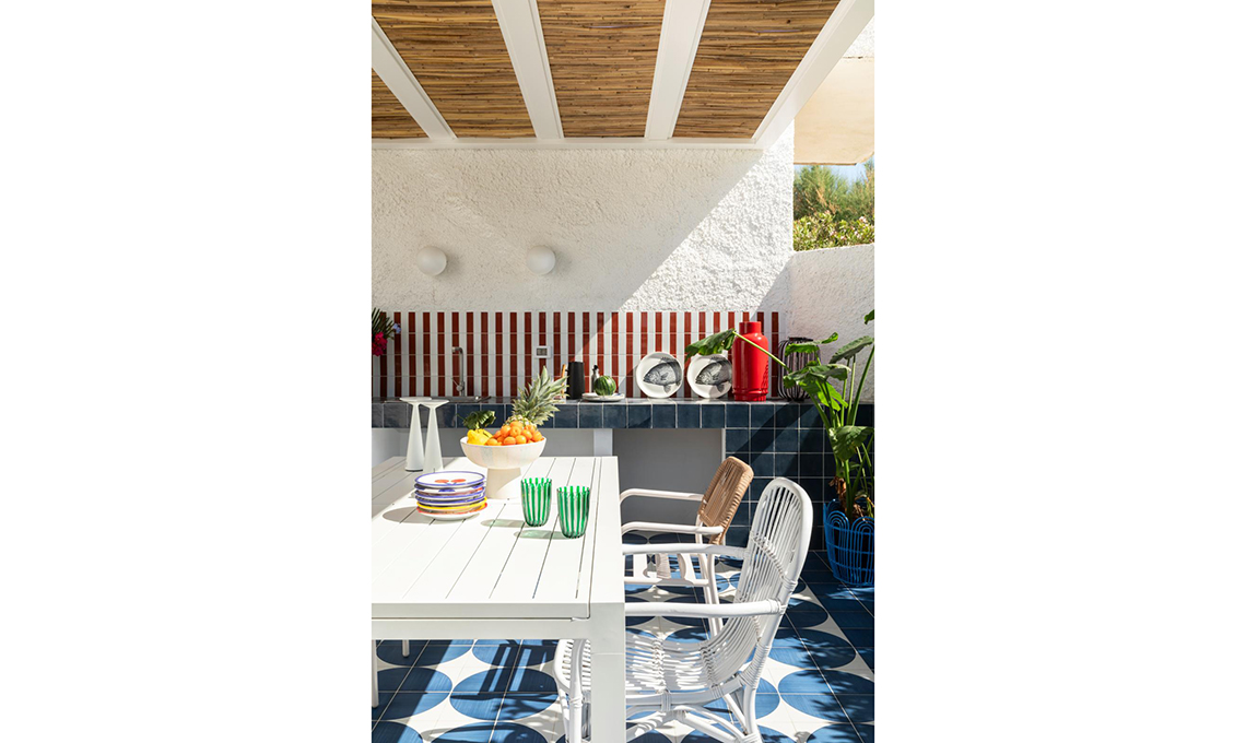 in cui tutto parla di vacanza, grazie a colori e materiali locali ma con un tocco esotico. E i tessili scelti da Cristina sono preziosi