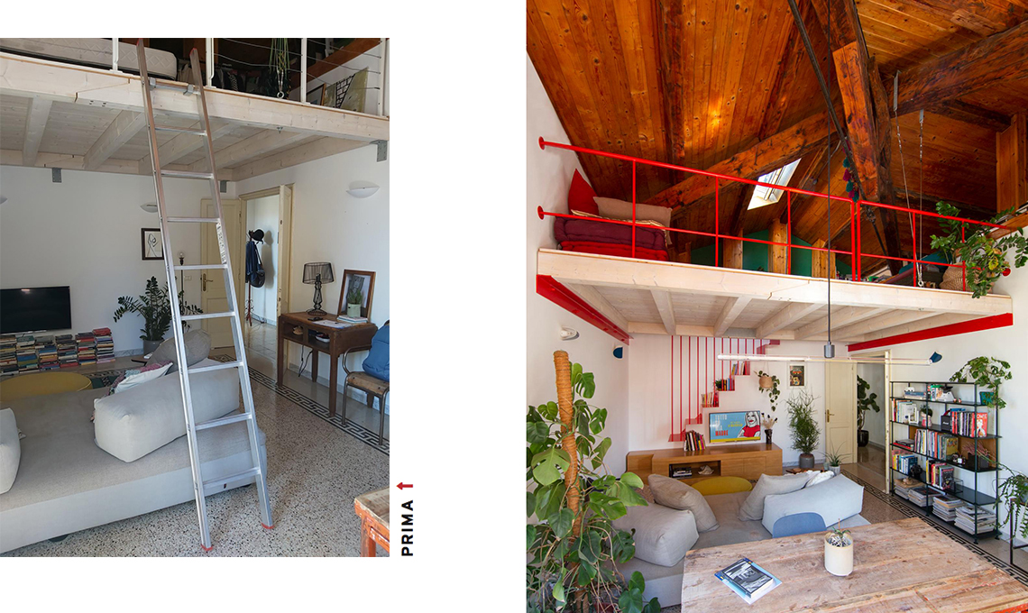 Il soppalco era già presente ma era addossato alla parete e raggiungibile attraverso una scala a pioli: praticamente non veniva mai utilizzato. Anche la mancanza di una finestra in falda lo rendeva