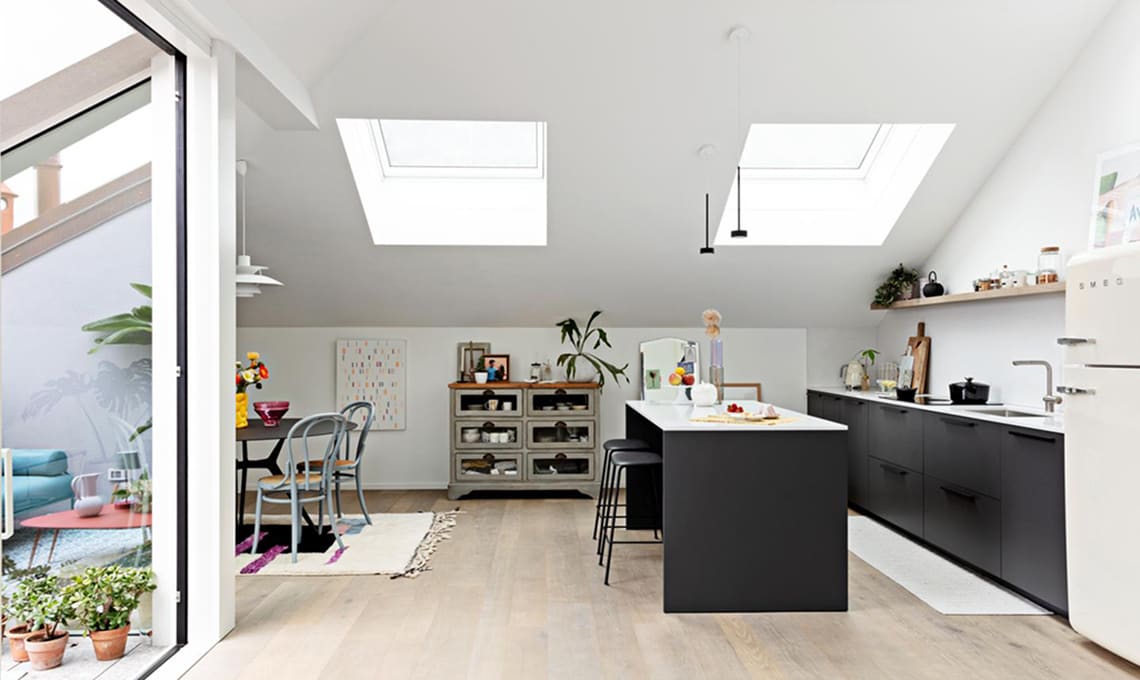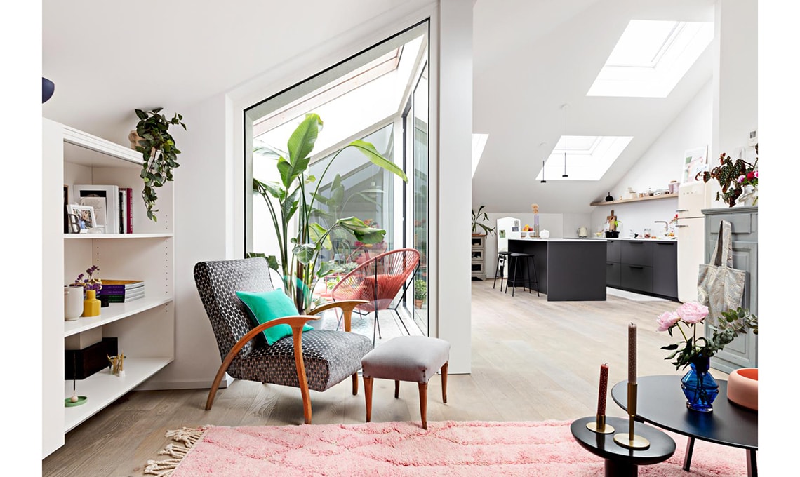 Si può trasformare un solaio buio in una casa da sogno? Certo! Gli ingredienti: un tetto nuovo autoportante (così la pianta è libera), un buon numero di finestre in falda, due balconi e... tanta fantasia!