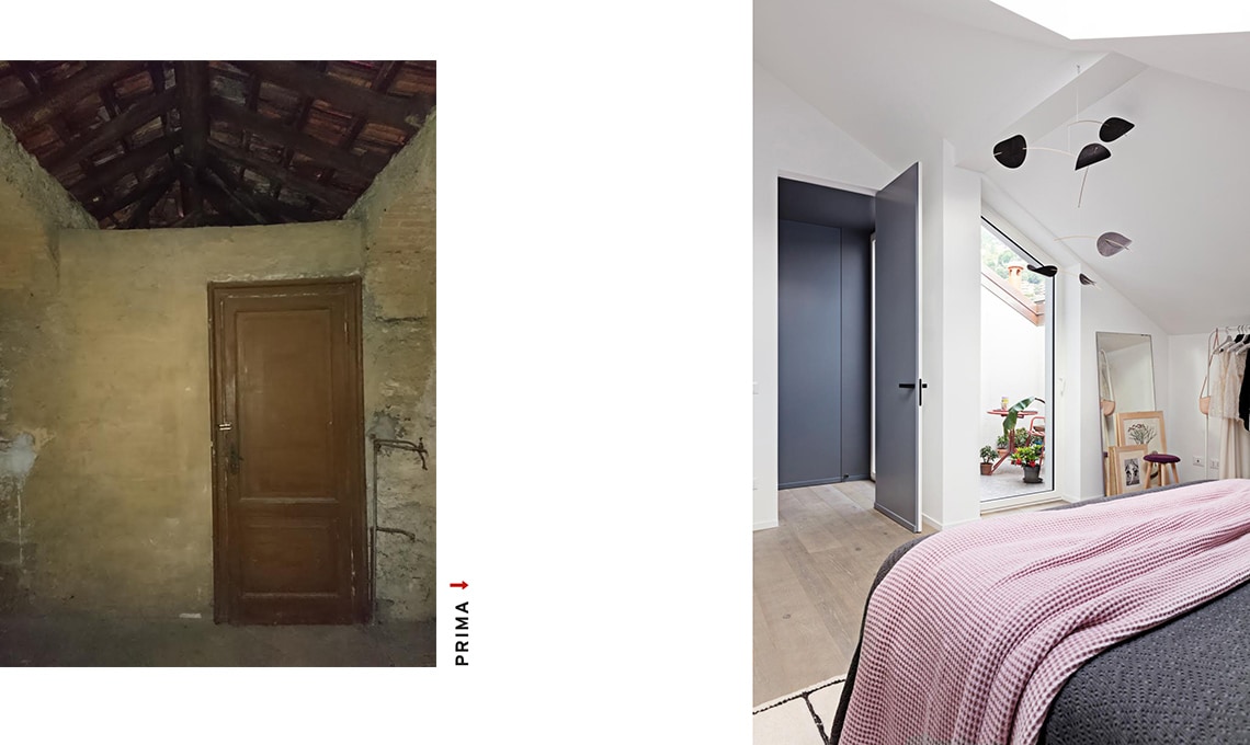 Il sogno di Beatrice (creator CF style) e Filippo era creare una casa da zero in città. Impresa ardua, finché non trovano un sottotetto-magazzino malandato in un palazzo primi ’900 e da lì l’idea: propongono ai proprietari di acquistare le soffitte e rifare a loro spese il tetto per rendere abitabili i locali e trasformarli nella loro casa. L’esito è positivo ma... «visto lo stato delle strutture e l’assenza di finestre, immaginare quello che poteva diventare è stato quasi un atto di coraggio» racconta Beatrice. «Per questo l’abbiamo battezzata #mansardinaimpavida, per non parlare dei continui imprevisti e rallentamenti causati dalla pandemia». Ma adesso che è finalmente terminata le brillano gli occhi!