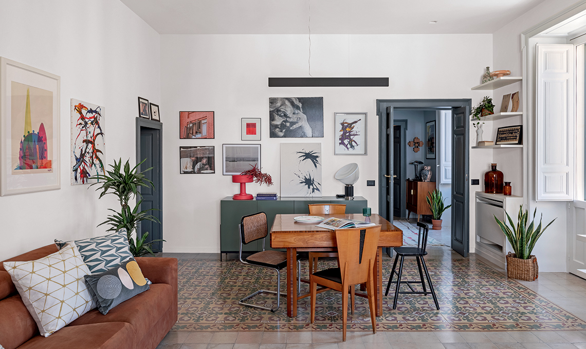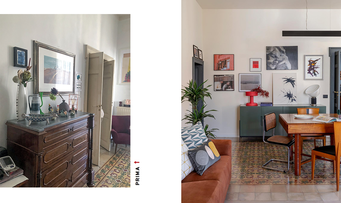Siamo nel centro storico di Avola, non lontano da Siracusa, al primo piano di un palazzotto di famiglia costruito tra il 1890 e il 1910. La proprietaria è Francesca, farmacista, che proprio tra le pagine di CasaFacile ha scoperto il servizio online di Atypique Design Studio e mi ha contattata per progettare un restyling a distanza che nella fase di ristrutturazione è stato seguito in loco dai collaboratori dello studio Work in Progress, le architette Sandra Saviotto ed Enrica Barone, e l’ingegnere Corrado Coffa. «Sono rimasta colpita dal fatto che, come me, Grazia amasse gli oggetti e i mobili vintage» dice Francesca. «Ne ho collezionati tanti nel tempo, ma volevo ottimizzare lo spazio». E non è facile ristrutturare una casa già piena, che sulla carta sembra non consentire molte possibilità di manovra...