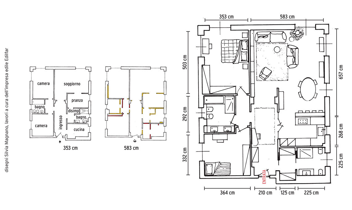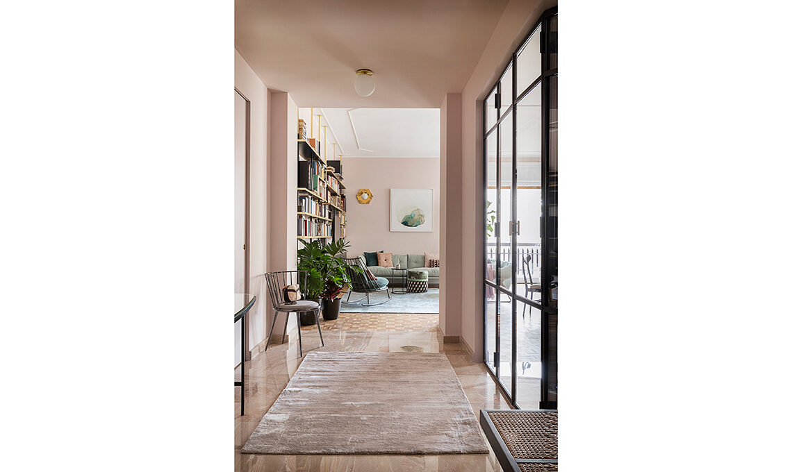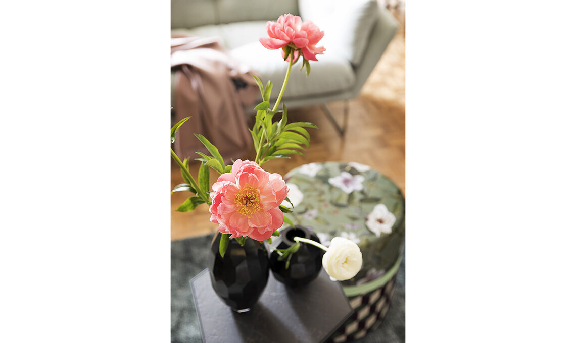 Sul divano 3 posti, cuscini Bear Cushion [Kirkby Design, cm 50x50 € 329,50], Carrè [L’Opificio, cm 43x43 € 126], Bakerloo Blossom [Kirkby Design, cm 50x50 € 119] e Geometric [HKliving]; sull’altro, cuscini Giardino Salvia [cm 45x45 € 45] e Tea Salvia [cm 30x 50 € 40] di [Nap Atelier] più il plaid Puro [Christian Fischbacher]. Sotto la finestra, panca B.T.H. Flats 3 [Detjer, cm 115x 40x45h€450] e piantana Meridian in metallo con bulbi satin [Riflessi € 793].