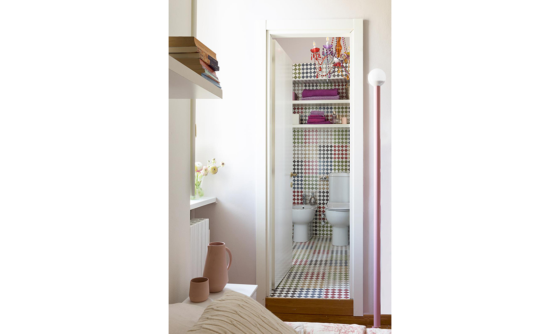Per renderla più intima, la zona notte si addolcisce con carte da parati romantiche fin dal corridoio. Per dare nuova vita agli arredi è bastato il colore.