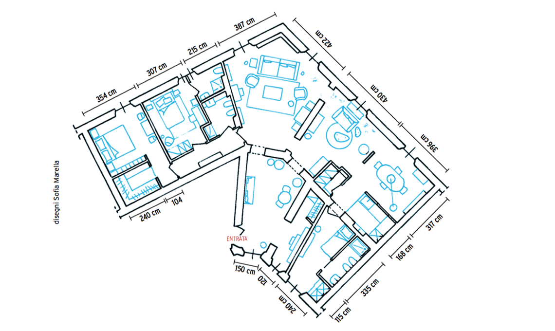 «È il colore dei cieli di primavera, quello che mi avvolge quando entro in questa stanza» dice Angela. «Ammetto che appena Vanessa me l’ha proposto ho storto il naso, non mi convinceva... Ma lei mi ha chiesto di fidarmi