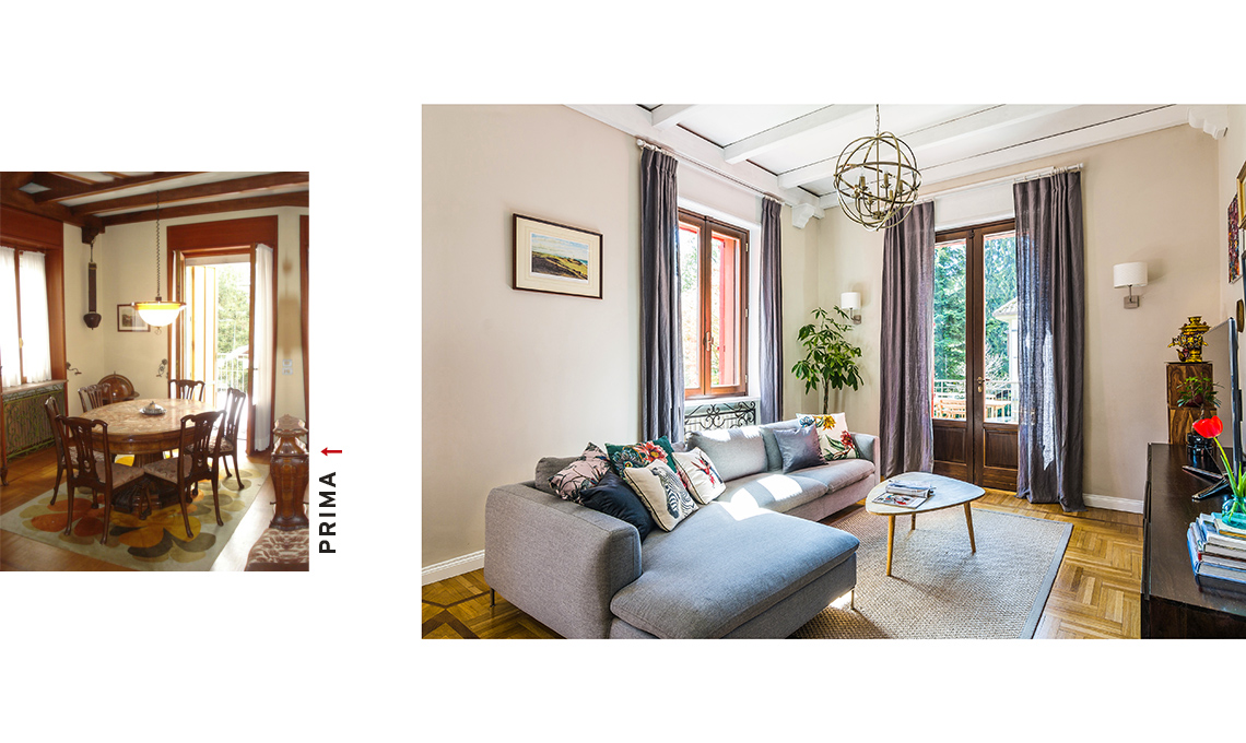 Lei è russa, lui britannico, si sono conosciuti sul lavoro; dopo qualche anno a Mosca, a Eugenia arriva la proposta di trasferirsi a Milano. Il marito non ha dubbi: è innamorato dell’Italia e del Lago Maggiore, dove andava in vacanza da piccolo, ed è qui che cercano casa. «Quando l’abbiamo vista ci è piaciuta subito», dice Eugenia, «emanava un’energia positiva, si sentiva che era stata molto amata e curata, anche se ormai era un po’... stanca».