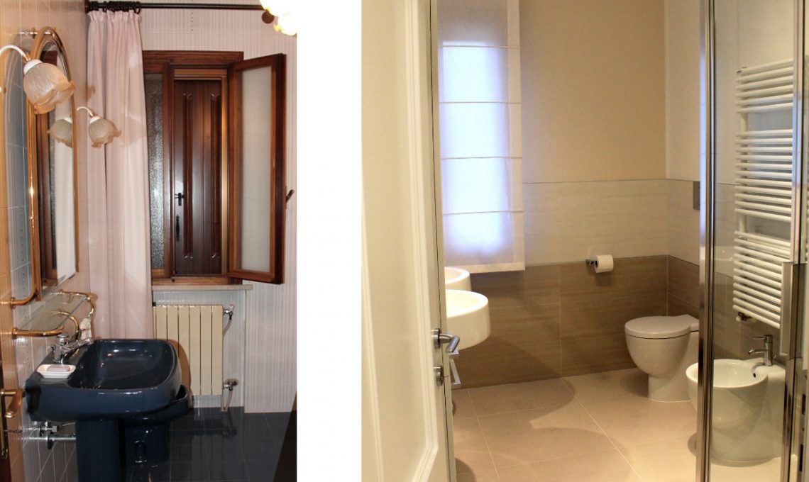 • Anche il bagno è stato completamente ristrutturato: al posto della vasca ora c'è una maxi doccia e i nuovi sanitari, assieme ai rivestimenti ceramici beige lo rendono più luminoso e visivamente ampio.