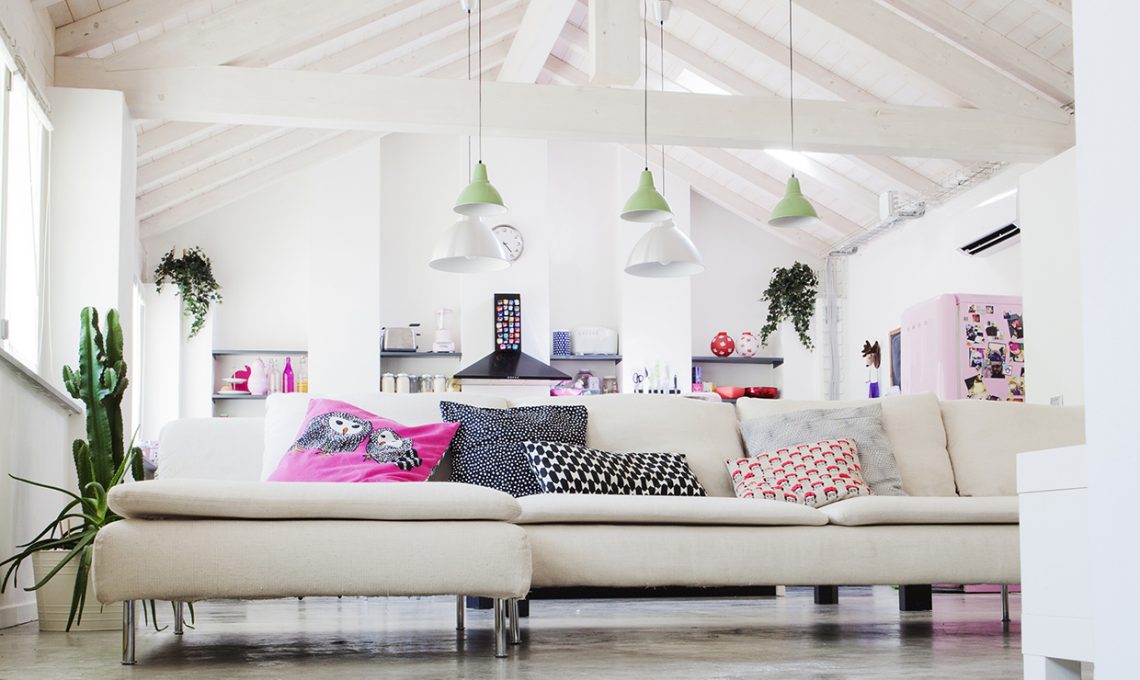 La casa di due creativi, illustratori e collezionisti è stata recuperata da un vecchio fienile del ’900: una casa fuori dagli schemi, popolata da gatti e oggetti curiosi. Un’abitazione fresca e gioiosa, nella quale il colore totem, il rosa (...lo sono anche i capelli di Clara, la proprietaria), non è mai lezioso. Anzi: qui tutto ha carattere, come chi ci abita. «Lavorare sempre in casa può essere alienante», dicono Clara e Matteo, «ci serviva un ambiente luminoso e... mai noioso».