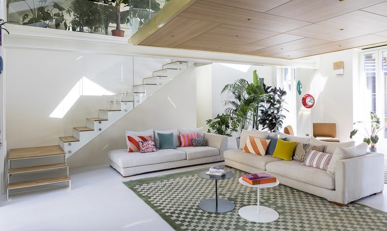 Nella zona relax convivono poltrone di design [LC2 di Cassina], morbidi sofà [Ektorp di Ikea, cm 218x88x88h €449 cad] e le maschere etniche raccolte da Rossella durantei suoi soggiorni africani.