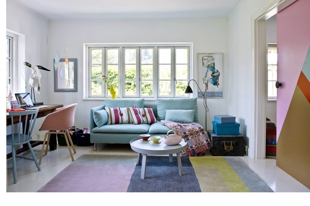 DOPO: con il restyling gli spazi sono più fruibili e il tocco di colore rende tutto più armonioso. Di Ikea: divano a 3 posti Soderham (euro 549) e tappeto ColouredCarpet (euro 859). Tavolino grigio Around (Muuto, euro 499).