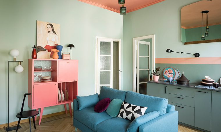 Alla ricerca di un appartamento che fosse particolare, Imma si innamora di questo, perché affaccia da un lato su uno slargo molto metropolitano («e io adoro la vivacità di Milano» dice) e all’interno su un giardino, vera oasi di pace. Inoltre si trova in un condominio progettato dall’architetto Luigi Caccia Dominioni negli Anni ’70. La casa era stata rivista alla fine degli Anni ’80, con scelte oggi poco attuali: Imma ha chiesto a Giovanna Fra di riprogettarla per renderla più moderna, ma al contempo di mantenerla in armonia con il contesto.
