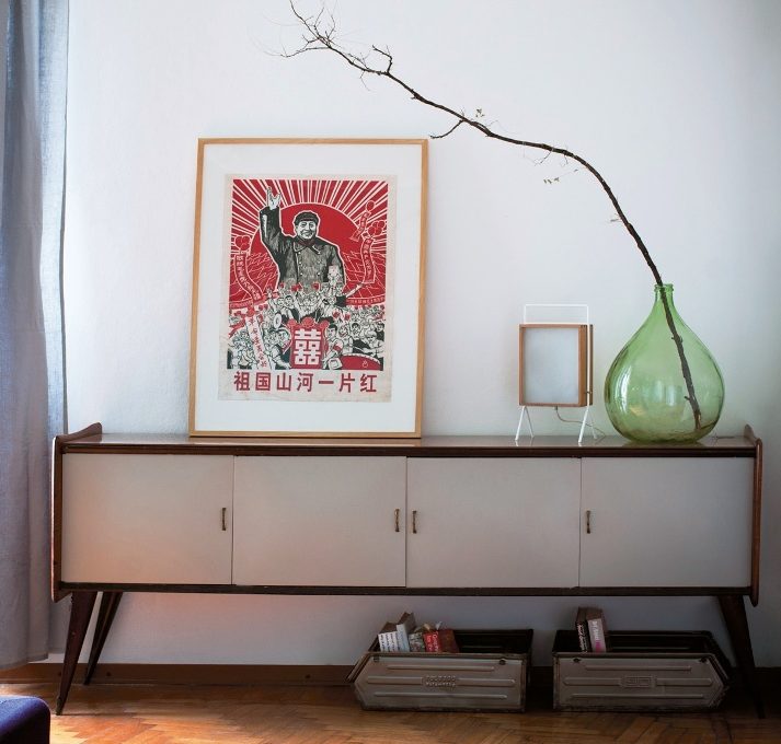 La parete di fronte al divano è bianca perché viene usata per delle proiezioni: può ospitare solo un mobile basso e il buffet Anni ‘50 comprato dai ragazzi, una volta sistemato è risultato ideale. Così, è diventato il mobile per tenere in ordine la tecnologia (cavi, dvd, consolle per videogiochi...).