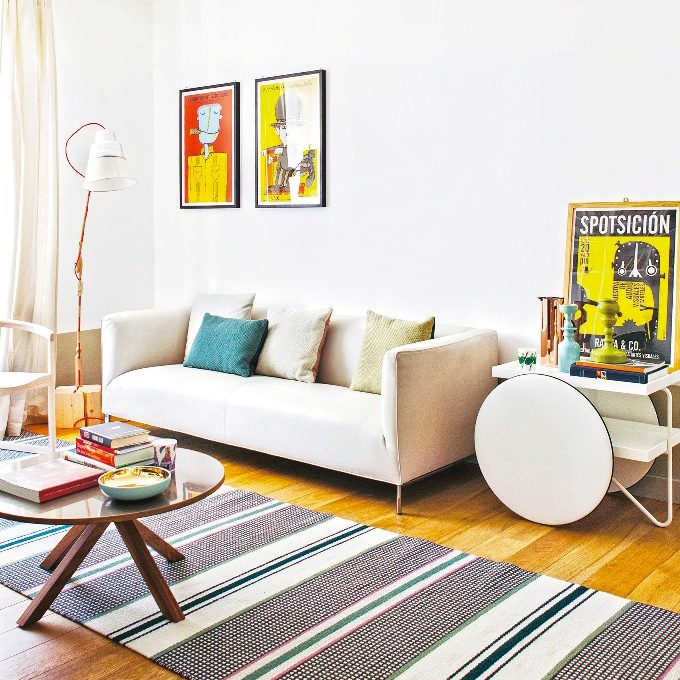Laura e Giuseppe hanno acquistato questo trilocale per viverci con la loro bimba Giulia. Un corridoio al centro collegava gli ambienti: il risultato? Spreco di spazio e poca luce nei vari locali. Per ristrutturarlo hanno chiamato uno degli architetti CF Style selezionato con il nostro primo casting, Francesca Pierucci. Eliminato il lungo disimpegno, la progettista ha ridistribuito gli ambienti e creato un secondo bagno. Quindi ha proposto il bianco per far risaltare i mobili vintage e aumentare la luminosità. La nostra stylist Cristina Gigli ha poi dato il tocco finale, grafico e colorato. L’ingresso ora è separato dal living solo da una libreria a ponte, disegnata da Francesca su misura per le esigenze di Laura, la proprietaria, che è grafica e lavora in casa. Nella parte che prosegue fino alla finestra ci sono la zona studio con il computer, il vano per la tv, e una base chiusa da ante. Di fronte, l’area relax con un sofà bianco, una poltroncina e due tavolini. E verso la cucina, il grande buffet Fifties di famiglia. Grazie al funzionale progetto di Francesca la cucina non è più separata dal soggiorno ma ne è parte integrante pur rimanendo parzialmente nascosta. In pratica, ora c’è un unico locale con doppio affaccio. Eliminato il corridoio, si è scelto di creare una composizione con penisola dove Laura, Giuseppe e Giulia possono mangiare tutti i giorni. Di fronte alla zona operativa è stata posizionata una credenza a vetrina vintage che i proprietari hanno fatto rimettere in forma e laccare nello stesso bianco dei mobili della cucina: a contrasto con il top e con il pavimento color moka. Pensata a misura di bambina, la camera di Giulia è degna di una principessa moderna. Qui l’intervento della nostra Cristina è stato importante poiché ha sostituito i pochi mobili presenti (unico elemento rimasto è l’armadio realizzato su disegno di Francesca) con un sommier pieno di cuscini colorati, uno scrittoio a forma di casetta, un pouf a ciambella, il tutto su un morbido tappeto rosa. E che dire delle deliziose bandierine che decorano il soffitto? Nella camera da letto matrimoniale si fa un tuffo nel passato perché i protagonisti indiscussi sono il letto e la toeletta degli Anni ’40, eredità di famiglia. Francesca è riuscita a dare loro il giusto peso utilizzando il total white sia sulle pareti sia sull’armadio che ha disegnato per Laura e Giuseppe. Cristina ha aggiunto qualche tocco décor a tema con delle insolite tappezzerie effetto trompe-l’œil e preziose lenzuola di lino in grigio e azzurro polvere. Anche nei due bagni si riprende il tema del bianco che gioca da protagonista (così lo spazio visivamente si dilata). Sanitari e piastrelle sulle pareti sono total white, a contrasto con le mattonelle effetto cementine esagonali posate a terra, che donano profondità. Per dare personalità ai locali Cristina ha fatto incorniciare e appendere delle fotografie in bianco e nero fatte da Laura e ha aggiunto un tocco di rosso con oggetti grafici.