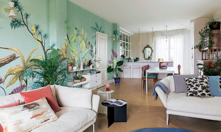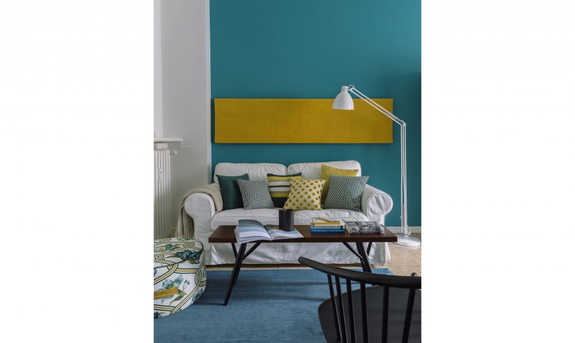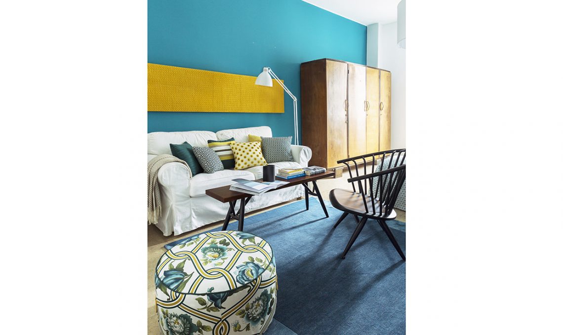 Romina amava molto gli arredi vintage che erano già nella casa: la credenza Anni ’50 dove tiene collezioni di tazzine e cristalli e le tovaglie ricamate da sua mamma, e il guardaroba d’antan, nella sua camera. Spostarli è stata la mossa vincente per valorizzarli e per ridefinire gli spazi. A rendere omogeneo l’insieme è il gioco dei colori, con azzurri e gialli ritmati su pareti, pavimenti e accessori.