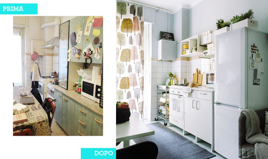 In cucina gli arredi erano accostati un po’ a caso, senza uno stile, senza un progetto né colori ben studiati. E la vecchia credenza, ingombrante, era troppo ‘chiusa’ per le esigenze di Romina, che ama tenere gli oggetti a vista.