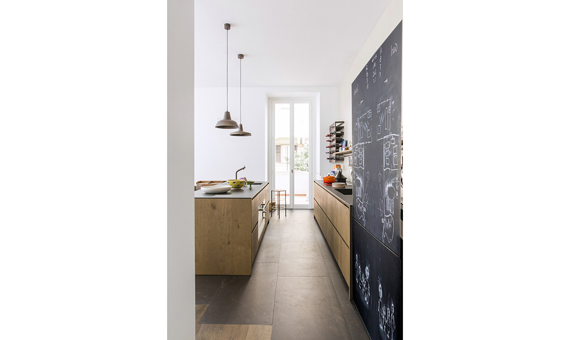 Una grande casa d’epoca: il sogno che si avvera ma... gli ambienti erano divisi in modo rigido per le esigenze della proprietaria, specie nella zona giorno. Lei, francese, ama gli spazi aperti, fluidi, flessibili e pieni di luce. Ma soprattutto vuole la cucina al centro dell’appartamento, perché è la sua passione, perché le piace che sia uno spazio conviviale e, non ultimo, perché da lì può tenere sotto controllo quello che le bimbe fanno nel living.