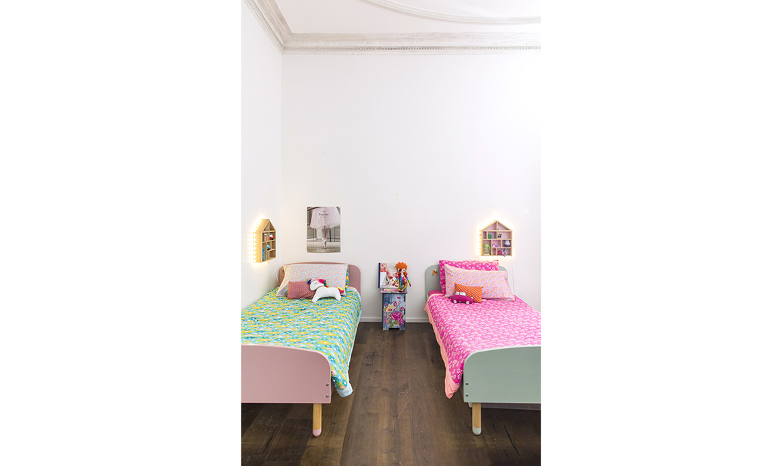 La chicca? Il volume soppalcato nel salotto che nasconde un bagno e, sopra, è il rifugio delle bimbe!