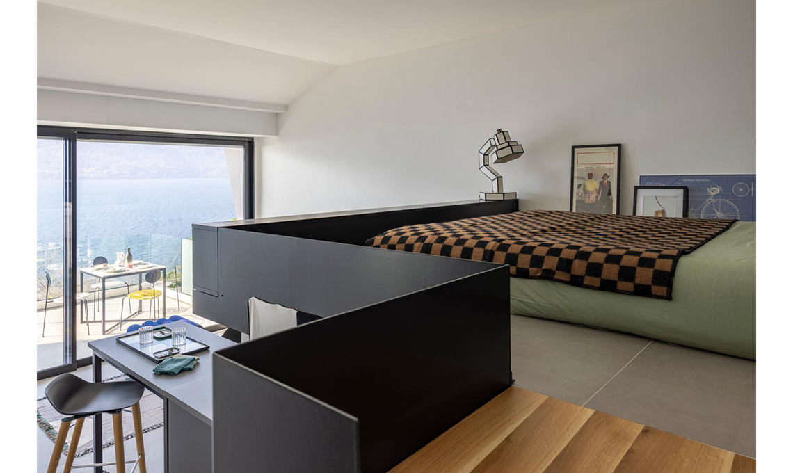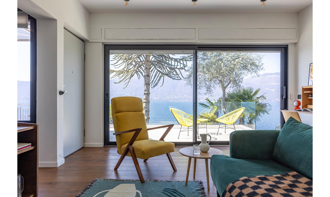 Affacciato sul Lago Maggiore c’è un comprensorio di villette con giardini e terrazzi a pochi chilometri da dove Antonio è vissuto con la famiglia fino a 15 anni fa, quando ha cominciato a girare il mondo per lavoro. Ora abita a Copenhagen e ha trovato in queste palazzine una casa in cui stare ogni volta che torna in Italia. L’appartamento richiedeva una ristrutturazione totale e per gestirla al meglio (e a distanza) si è fatto aiutare dall’architetto Yulia Pyanzina, che ha lo studio in zona.