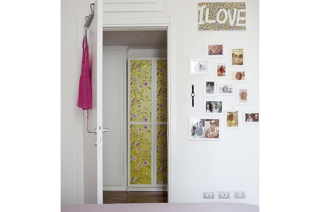 L’idea di tappezzare una stanza o una parete, a volte ci frena un po’. Ma non sottovalutiamo l’idea di trasformare piccoli oggetti come ha fatto Antonella a casa sua. Per esempio si è “inventata” quello che sembra un armadio a muro nel corridoio rivestendo solo le ante.
