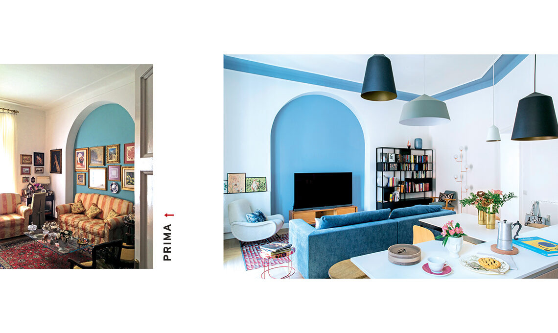 «Per esaltare il sapore Anni ’30 della casa è stato scelto un parquet di rovere posato a spina francese diagonale (che enfatizza l’asse principale dell’abitazione) ed è stato fatto un delicato lavoro di pittura che tra archi e cornici esistenti scandisce lo spazio tra i toni del bianco, dell’azzurro polvere e del rosa». E il tocco finale CasaFacile style l’ha dato la nostra Cristina Gigli, che ha curato questo servizio fotografico.