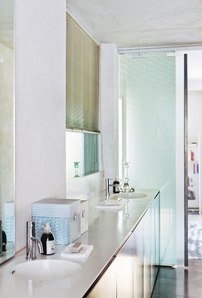 Con la ristrutturazione si è deciso che la luce doveva giocare un ruolo fondamentale e che gli ambienti dovevano essere fluidi. Per questo il corridoio di accesso alla zona notte non solo è chiuso da una porta a vetro (specchiata solo dalla parte del soggiorno, per garantire la privacy), ma ospita un grande mobile con due lavabi che prosegue fin dentro la camera. In questo modo, nel volume del bagno è stato possibile inserire una maxidoccia e, accanto al letto, è stata ricavata la cabina armadio.