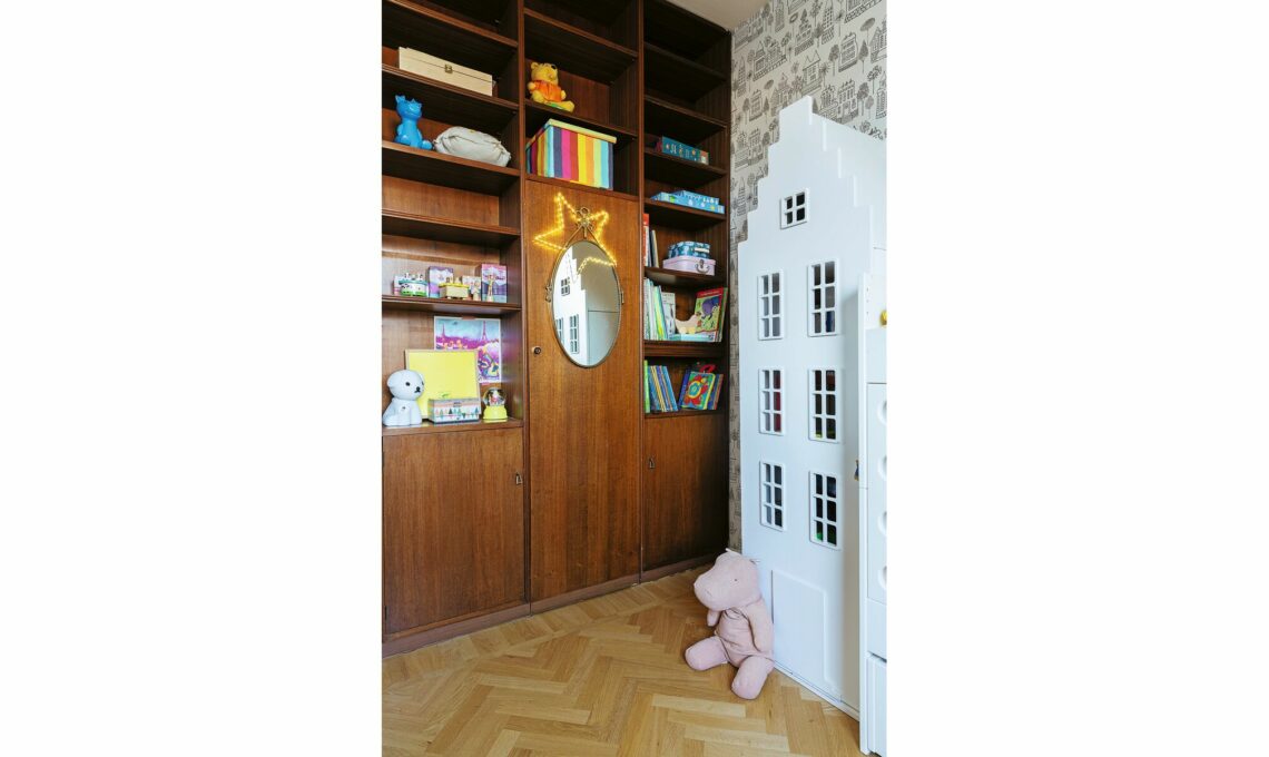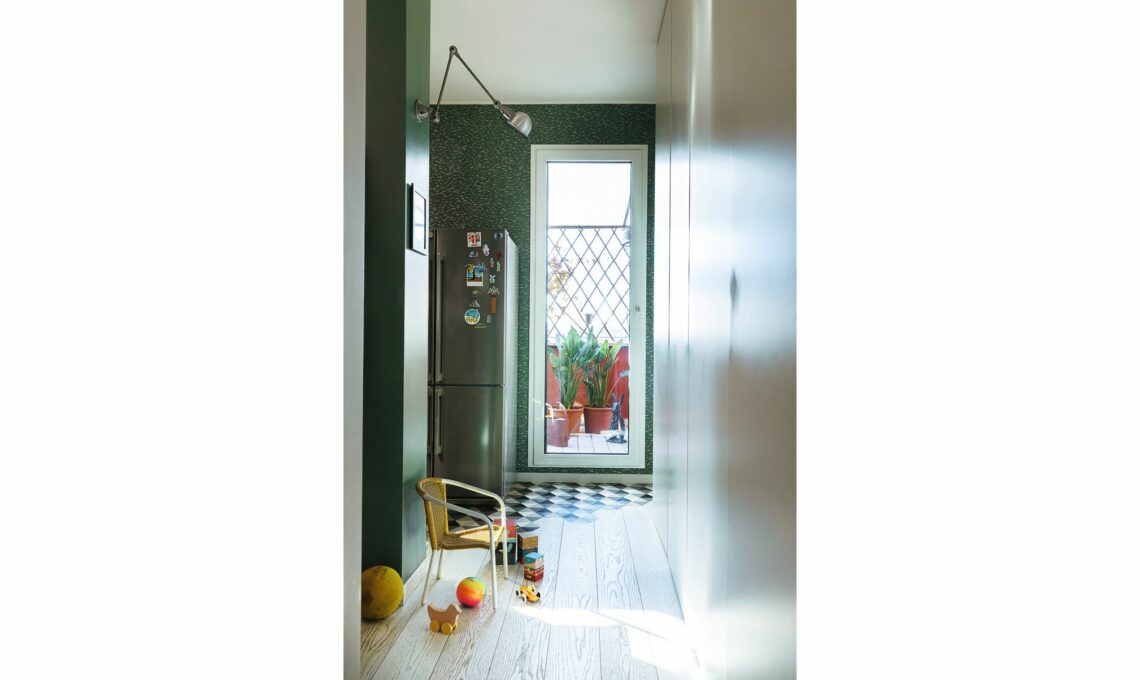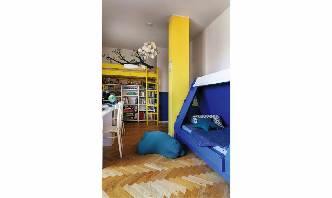 Quella che oggi è la zona giorno, una volta era l’intera casa di Andrea e Giorgia, che ci hanno vissuto fino all’arrivo dei primi due figli. «Quando, dopo la nascita di Anita, la terza, si è liberato l’appartamento accanto, non ci abbiamo pensato due volte ad acquistarlo per avere finalmente tre camere da letto!» racconta Giorgia.