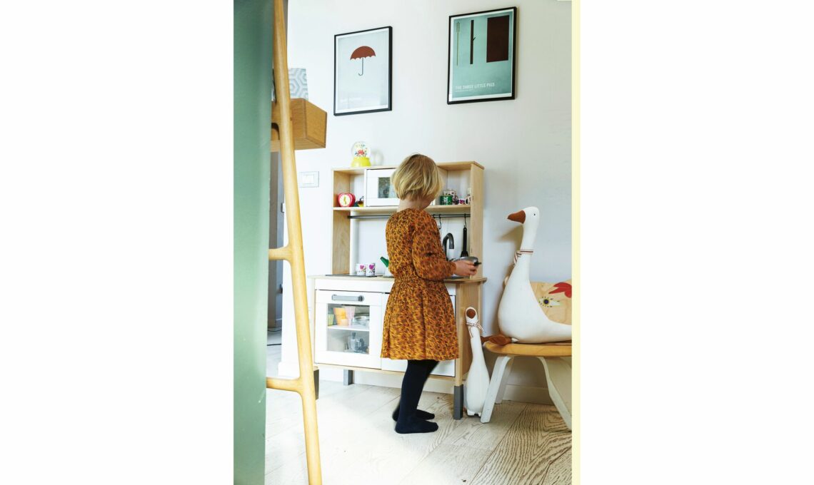 «Con tre bimbi la casa doveva essere divertente e giocosa», dice Giorgia che nel suo negozio vende proprio arredi originalissimi per stanze junior. «Ho chiesto loro di aiutarmi ad arredare le loro stanze e ci sono angoli dedicati a ognuno dei tre ovunque». Come la mini-cucina di Anita, che vi lasciamo scovare tra le stanze di questa casa informale, coloratissima e vera!