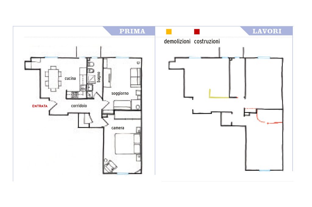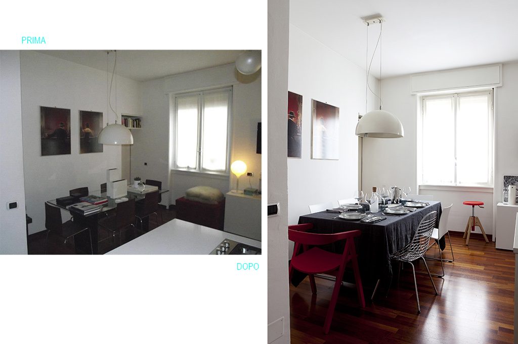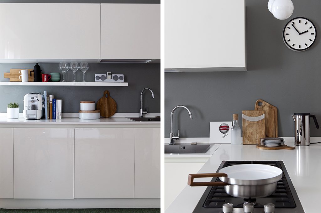 Il padrone di casa non ha mai amato troppo destreggiarsi fra fornelli e ricette, ma i suoi amici adorano i manicaretti: al punto che, quando si tratta di cenare insieme, spesso elaborano delizie al suo posto! La cucina precedente, disordinata e stretta fra diverse porzioni di muratura, è stata spazzata via dal desiderio di convivialità (materializzato in una struttura a L tutta aperta e completa di ampio bancone con sgabelli).