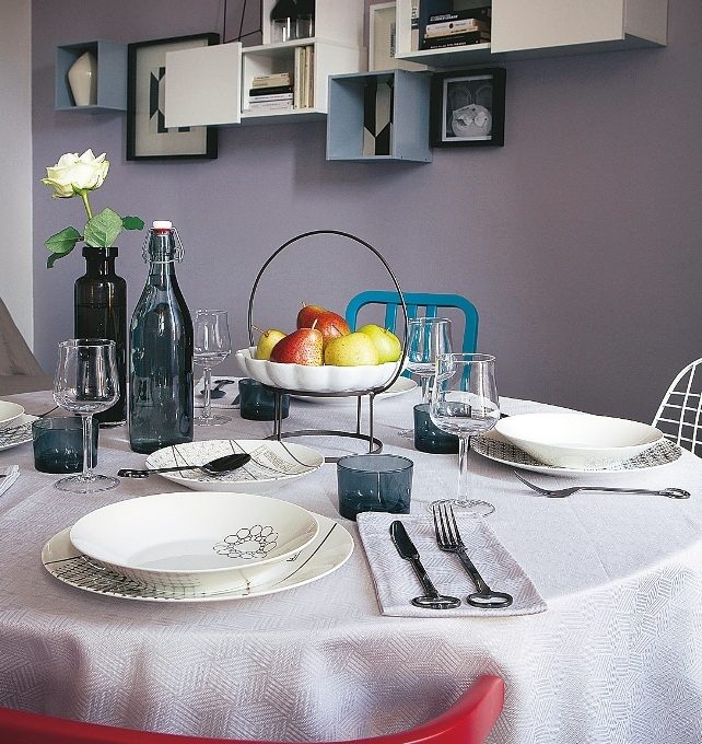 L’apparecchiatura, sobria ed elegante, rispecchia il gusto della padrona di casa che ha scelto di abbinare quattro sedute di foggia e colori diversi, all’apparenza discordanti, per rallegrare l’insieme. Puoi copiare questa idea verniciando sedie diverse, magari recuperate in soffitta o nei mercatini vintage.