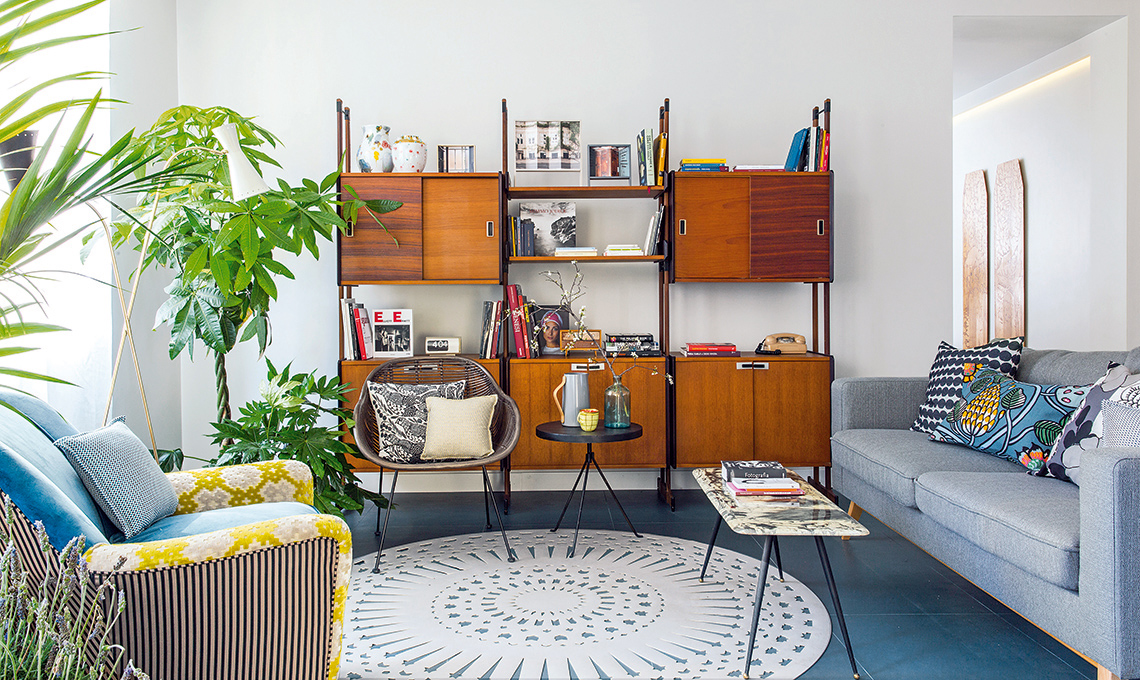 Il living ruota attorno alla libreria di famiglia Anni ’60 e alla cucina disposta a ‘elle’ e con un lunghissimo piano di lavoro che sembra abbracciare il tavolo da pranzo. Cristina, la nostra stylist, è riuscita a mixare al meglio i pezzi unici con elementi contemporanei ma di ispirazione vintage. E che dire dei colori e delle fantasie maxi che vestono e animano lo spazio?