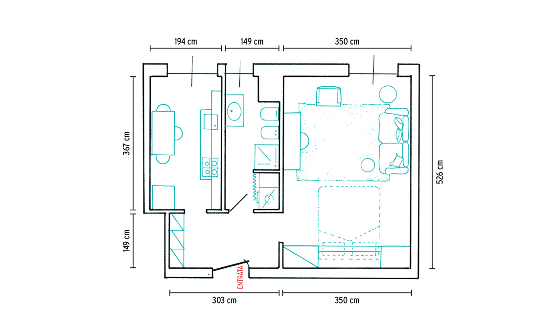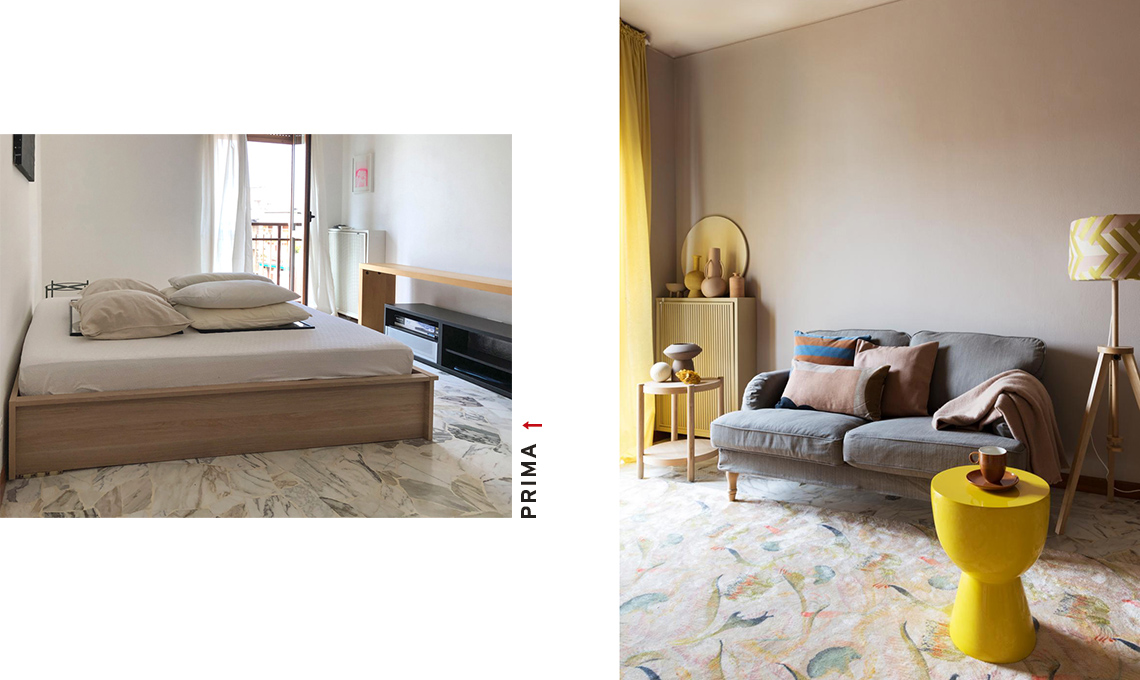 Questo appartamento da sempre veniva dato in affitto, ma con il lockdown è rimasto sfitto per qualche mese. La proprietaria, che ha sperimentato in prima persona lo smart working, ha deciso che occorreva un restyling affinché rispondesse alle nuove esigenze lavorative della futura affittuaria Irene che, qualche giorno a settimana, deve lavorare da casa e ha bisogno di uno spazio pratico e piacevole. Dato che dei due locali uno è la cucina, l’altro doveva servire da soggiorno, studio e camera. Impossibile? No, eliminato il letto matrimoniale e senza ricorrere a un divano letto, la nostra stylist e architetto Giovanna Fra ha proposto una soluzione che ha accontentato tutti.