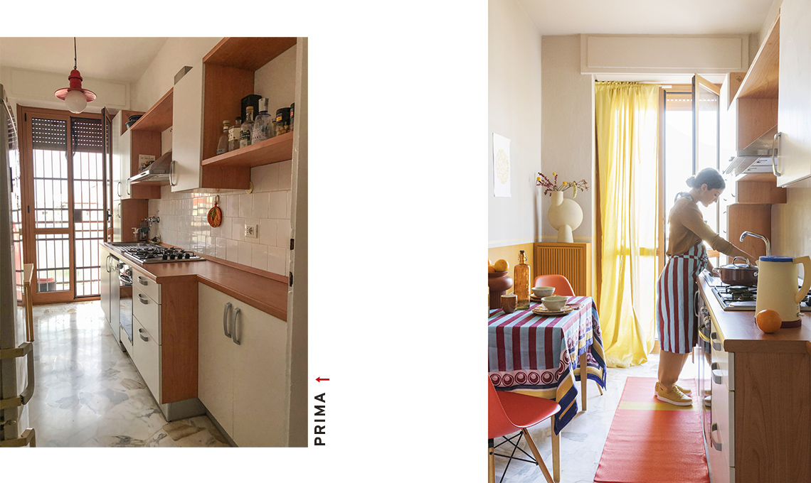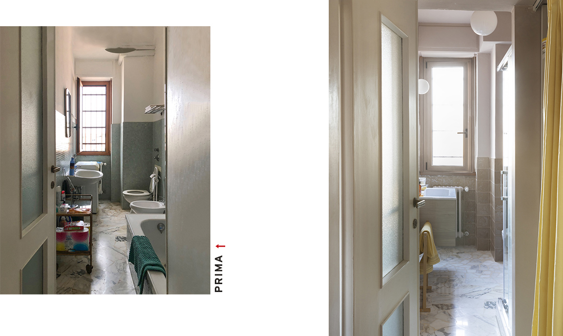 La proprietaria e Irene sono a dir poco entusiaste: nella stanza ci stanno comodamente, senza dover spostare nulla, un divano, una poltrona e l’angolo ufficio. La cucina ha richiesto solo un piccolo intervento di colore sulle pareti, mentre il bagno è stato ristrutturato al fine di ricavare anche una zona lavanderia.