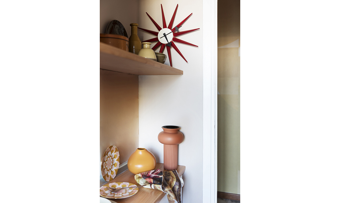 € 101,50], tovaglioli [Borgo delle Tovaglie]. Orologio Sunburst Clock, design George Nelson [Vitra, ø cm 47 € 358].