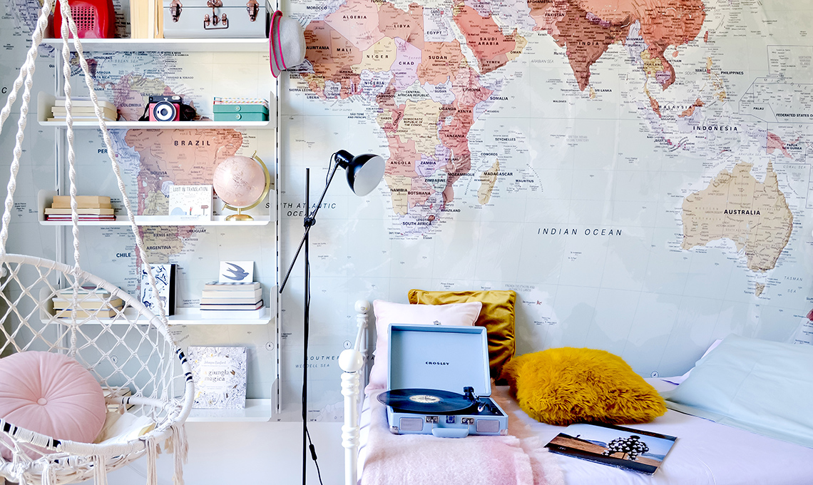 Nuovo look alla camera con la carta da parati planisfero