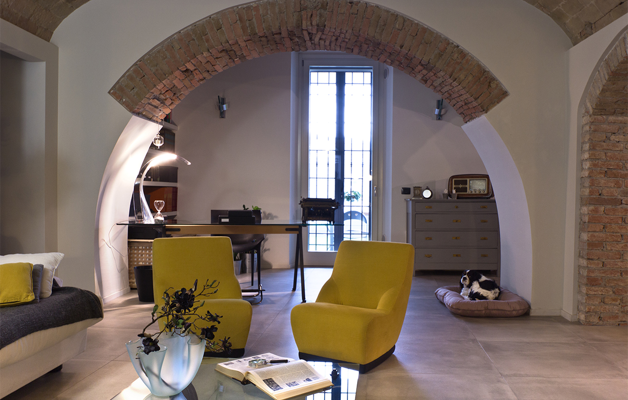 Un ristorante diventa appartamento, con muri di pietra