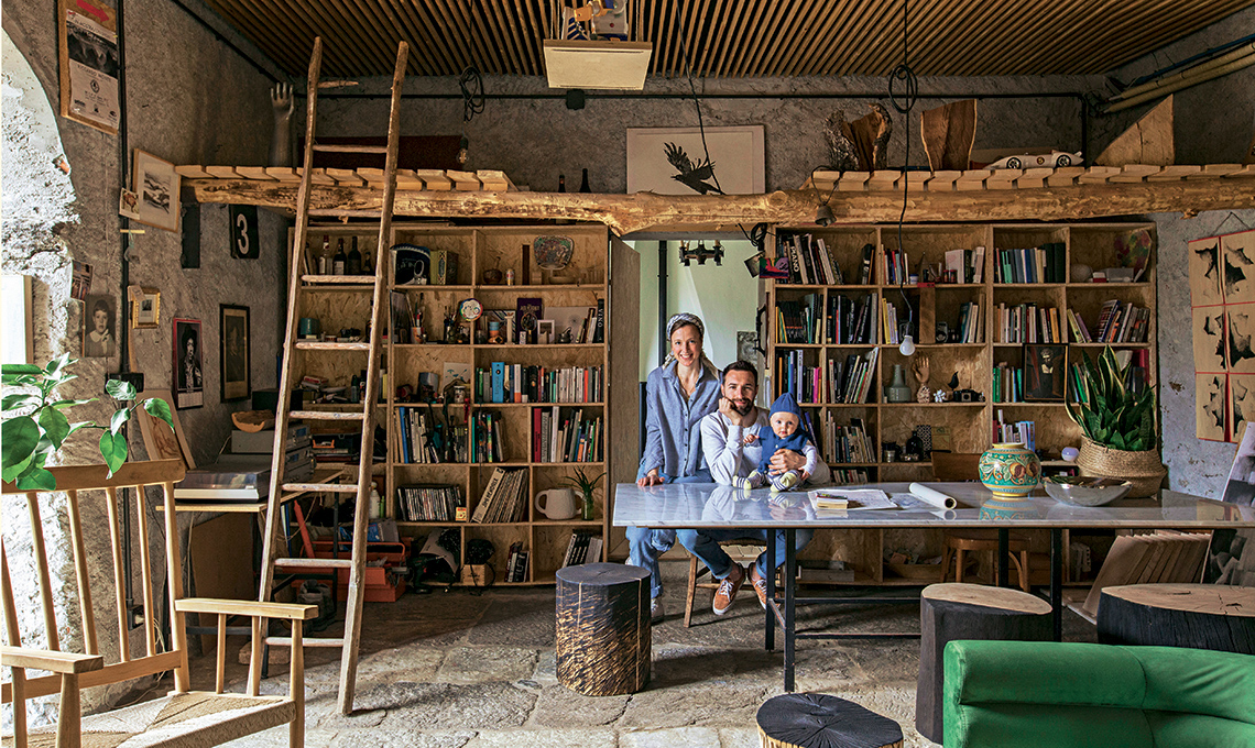 Legno e pietra scaldano l’atmosfera nella casa di una famiglia di creativi