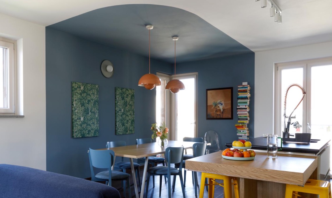 case degli architetti A Praga un attico si rinnova con travi a vista, tocchi di rosso e collezioni d’arte