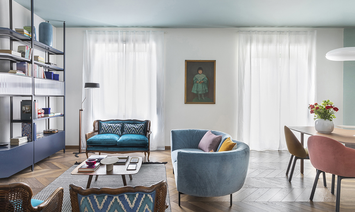 Stile soft ma con brio per un appartamento d’epoca a Roma