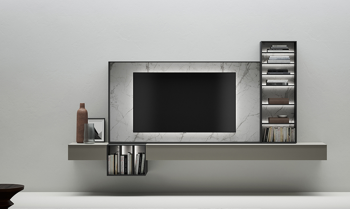 Sistema Wallover®: interpreta in chiave architetturale le pareti del living