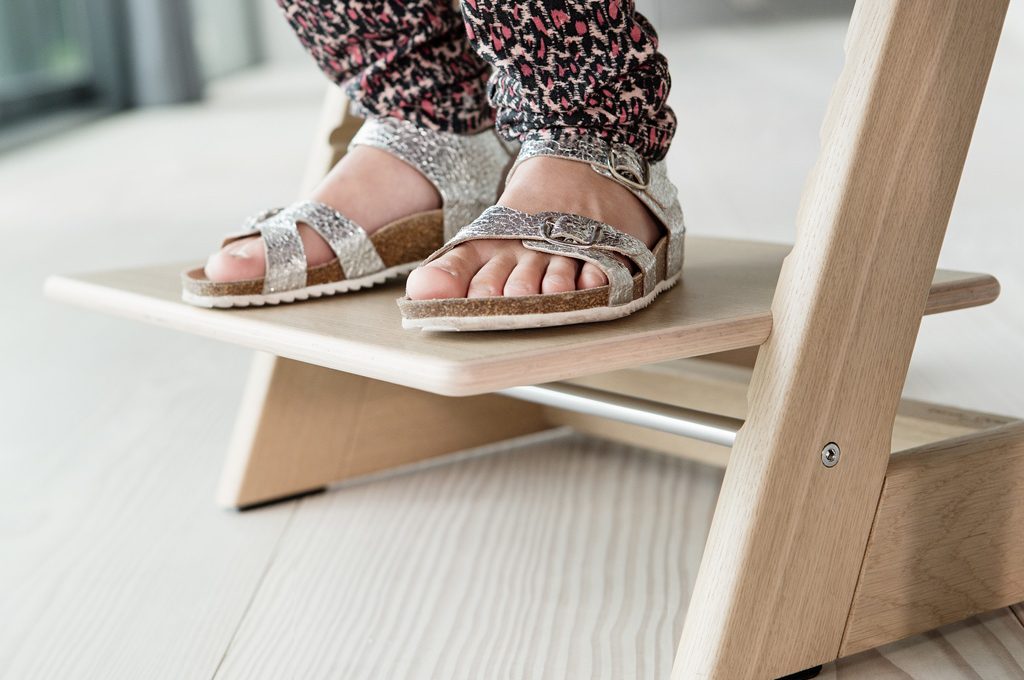 Realizzata con i migliori legni europei, Tripp Trapp®, grazie al suo design modulare, consente libertà di movimento sia in profondità sia in altezza grazie alla regolabilità della seduta e del poggiapiedi. Questi, una volta posizionati correttamente secondo le dimensioni del bambino, consentono una corretta postura ad ogni età.