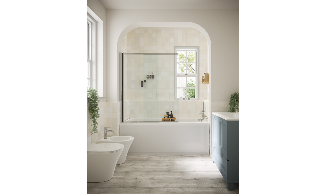 Il dettaglio in più: la vasca da bagno è pannellata, quindi non richiede opere murarie ed è perfettamente incorniciata dall’arco della nicchia in cui è installata.